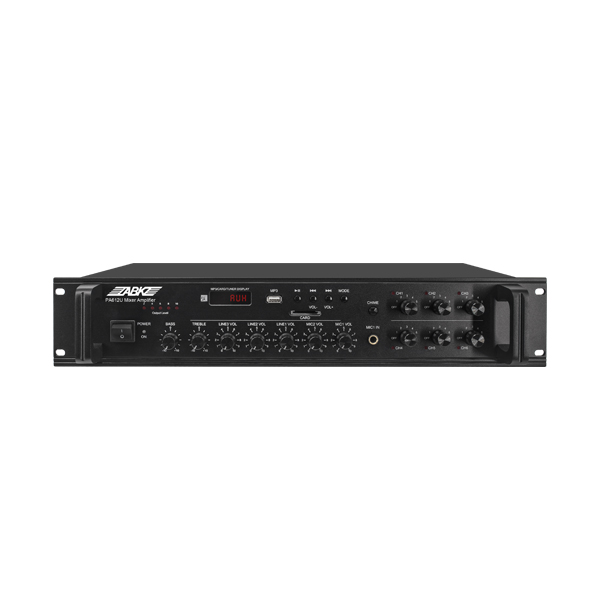 This product is a mixer amplifier with MP3 player, FM tuner, and Bluetooth. It supports infrared remote control for mode switching, program selection, volume control, EQ mode selection, and source selection. With an LED display screen, it can show the volume level, playing status, program number, etc. It provides 4 microphone inputs, 3 auxiliary inputs and 1 auxiliary output. Also, with a zone selector, it can realize separate volume control for 6 zones.