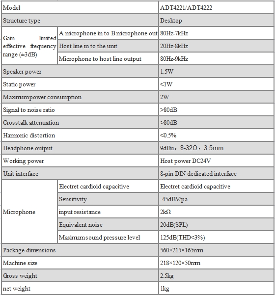 The conference unit integrates functions such as speaking, voting, sign-in, self-test, tea application service and two-way intercom. Adopt cardioid directional condenser microphone, built-in internal magnetic speaker, headphone jack, with microphone on indicator ring and touch button light switch indication. It has the function of voice control switch in VOICE mode. Built-in digital high-speed processor and high-fidelity audio circuit. The unit with LCD capacitive touch screen can be operated by touch. The display can show the identity and working status of the chairman unit / VIP unit / common unit. With a variety of working modes, with echo cancellation, howling suppression, background squelch and other functions.