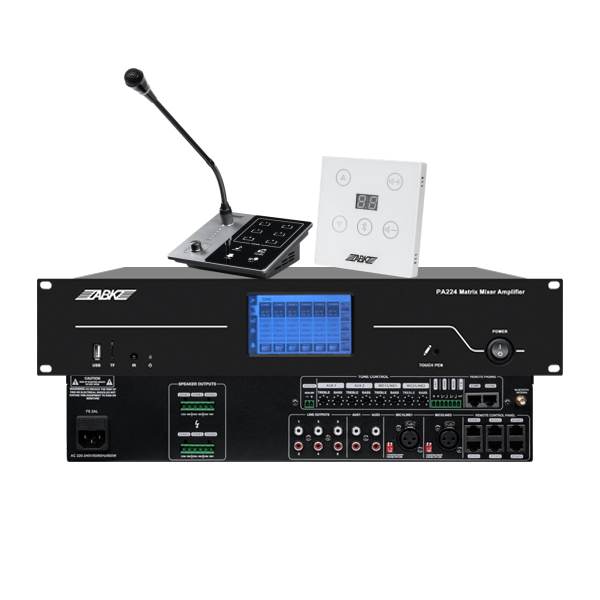 The PA212 PA224 PA20M PA20W multi-function matrix public address system is a newly designed and highly integrated audio matrix host system. This new system not only features an 8×6 signal matrix but also includes multimedia playback capabilities. It incorporates a six-channel output design that supports 100V constant voltage output. Additionally, it supports the PA20M remote paging microphone with a glass panel touch button design and the PA20W Bluetooth touch panel, both as expansion peripherals. The multi-function matrix PA hosts PA212 and PA224 are specified at 6×120W and 6×240W, respectively, both designed with a 2U chassis. The high degree of integration in these devices helps save space and reduce wiring complexity. They come with a comprehensive set of logical interfaces and a well-defined priority system, making them suitable for most small to medium-sized broadcast system applications. Additionally, they can be integrated with other systems for enhanced functionality.