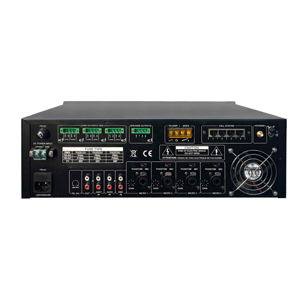This is a cost-effective professional intelligent address system with high-grade aluminum-alloy panel and elegant appearance, which is suitable for household, factory, school, hospital, shop and other commercial applications. With imported power tube, this amplifier has strong power, wide frequency band, low noise, high fidelity and quality. There are constant voltage output of six zones and constant impedance output in order to facilitate the user to connect different loudspeakers. With perfect and reliable overload protection, short-circuit protection, and overheat protection, the safety performance of this equipment is improved.